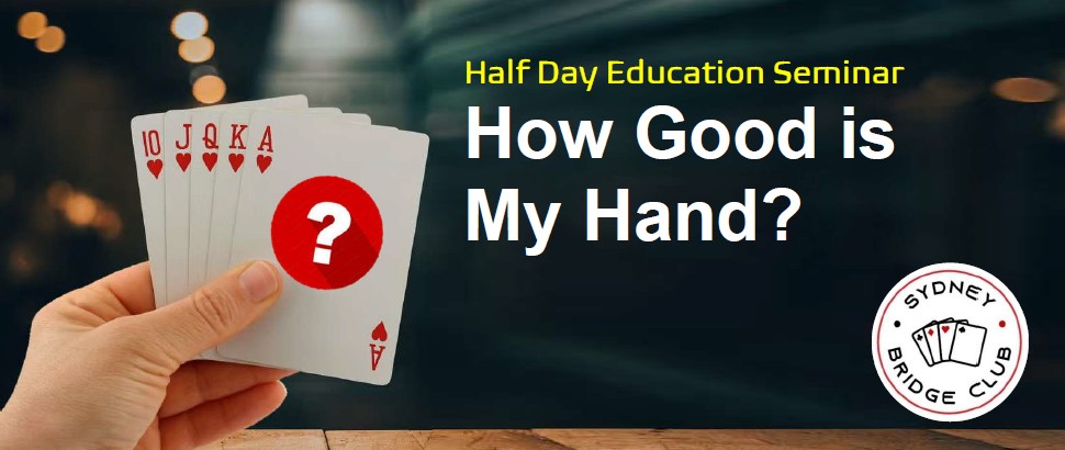 - How Good is My Hand? Half-Day Player Education Seminar – Friday 20th March 2026This half-day Education Seminar in the SBC clubroom (Friday 20/03/2026) will explore your system and help you evaluate the strength of your hand in various situations. We will look at the different methods that are used to evaluate hand strength and learn how to better estimate which contract and how … Continue reading