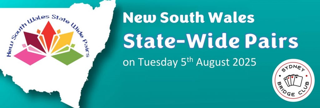 Compete in a familiar environment and rank your results among all participating clubs in New South Wales. The NSW State Wide Pairs will be held as a single session on Tuesday 5th August 2025, 10.00am – 1.15pm at City. A souvenir booklet with hand commentary will be distributed to all participants.