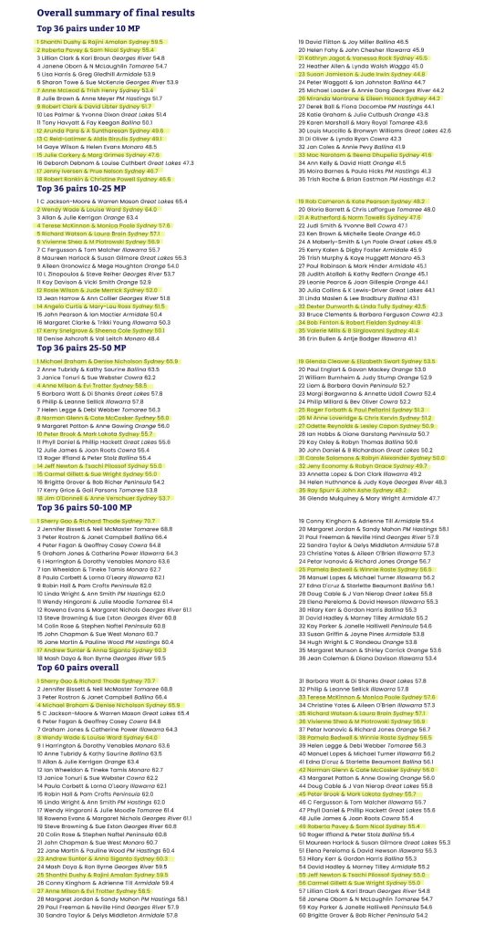 The Under 100 Masterpoints Pairs Championship is designed for players with fewer than 100 masterpoints. We ran it on Wednesday 26th November 2025. The results was then submitted to the State-wide ranking. The state-wide results are now up, we are thrilled to find out so many of our players were on the leader board – among the solid ones who we expected them to continue to shine, there were some up & coming rookies (learnt and have played for about 2-3 years) and some very new players (learnt and have played for about a year). Congratulations!