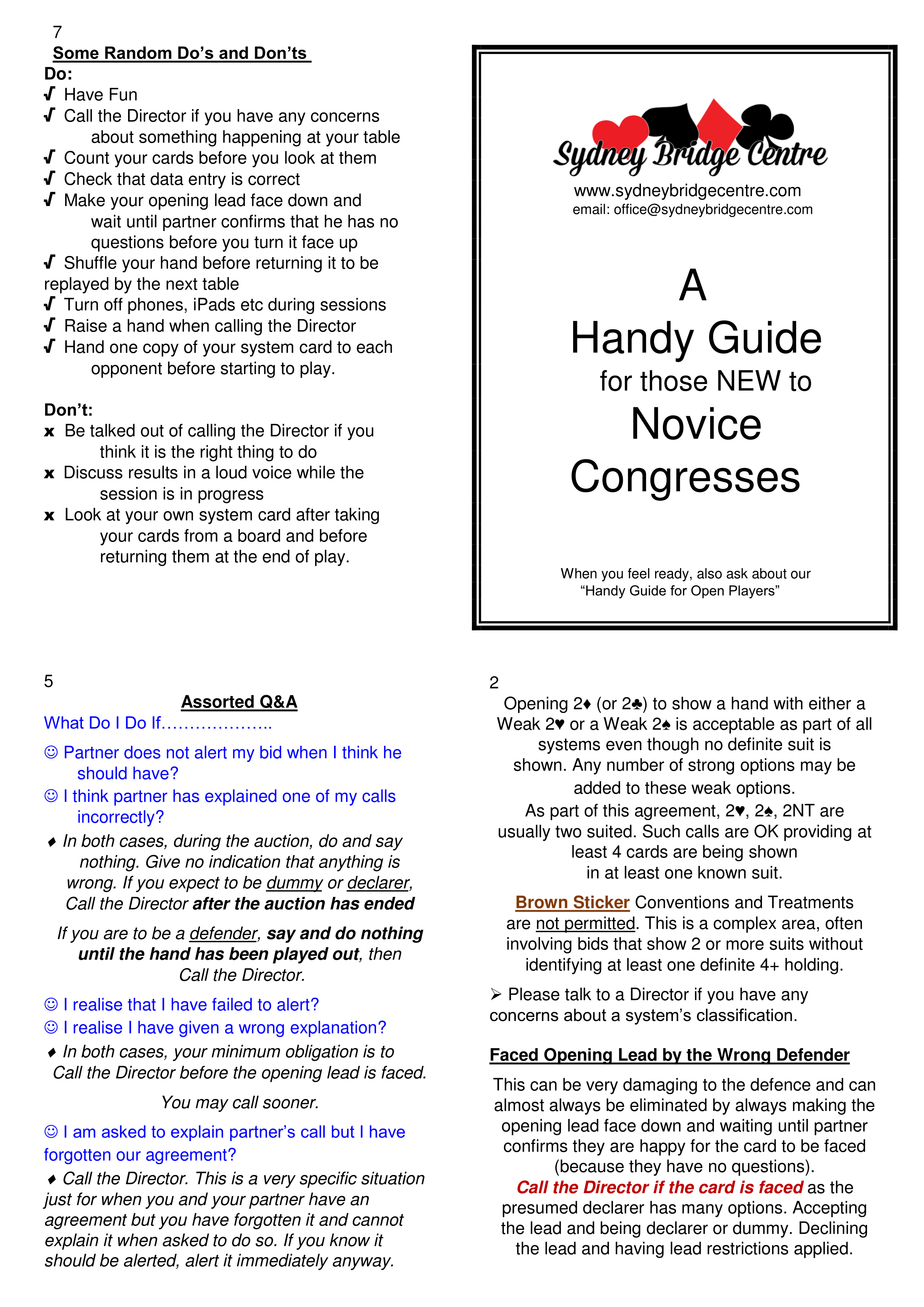If you are wanting to try a Congress, as a Novice or Restricted Player, then probably the “Handy Guide for New to Novice Congresses” would be best.