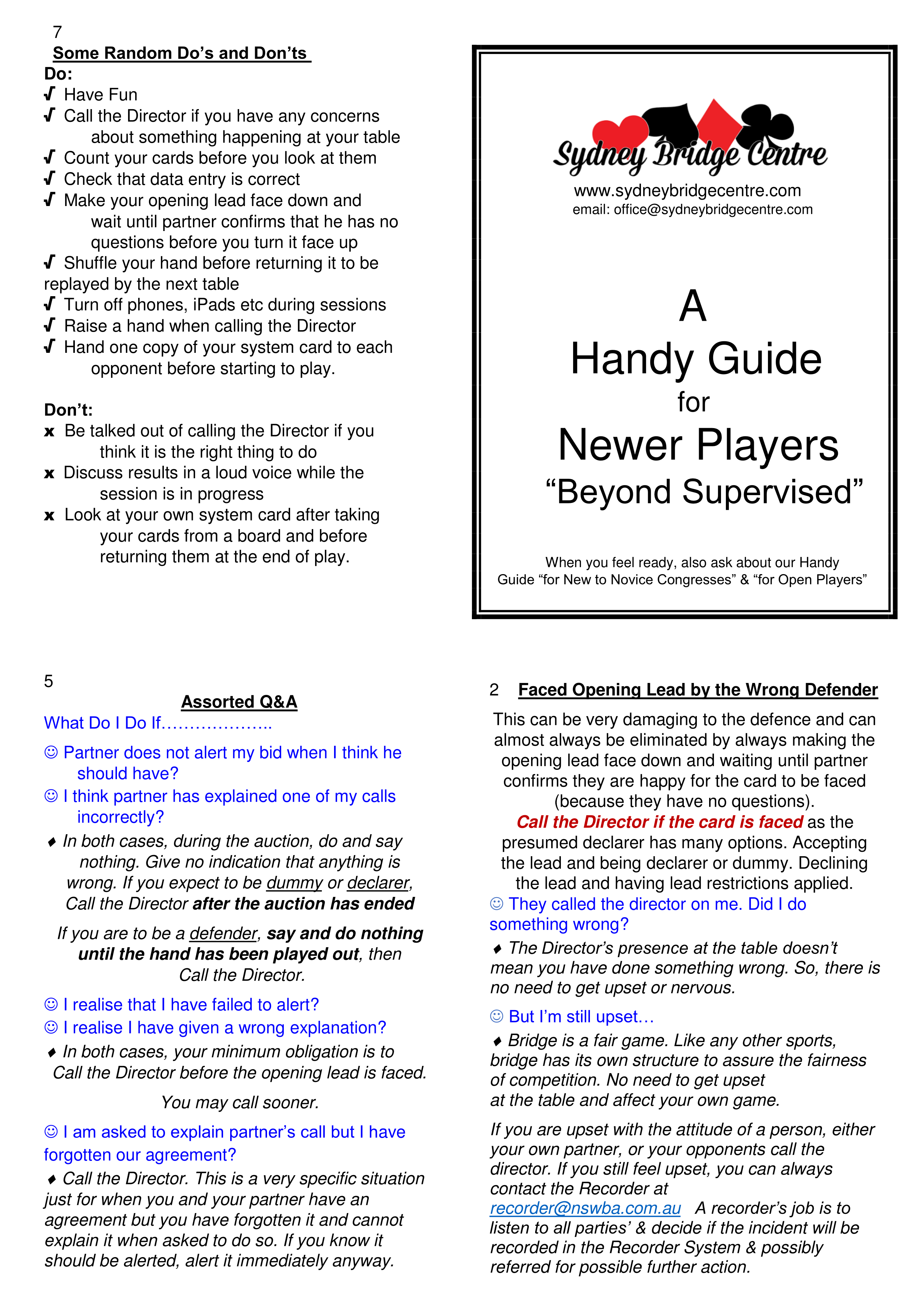 If you are fairly new to bridge, and are looking to move from Supervised, then the first is the most appropriate, the ‘Handy Guide for Newer Players”