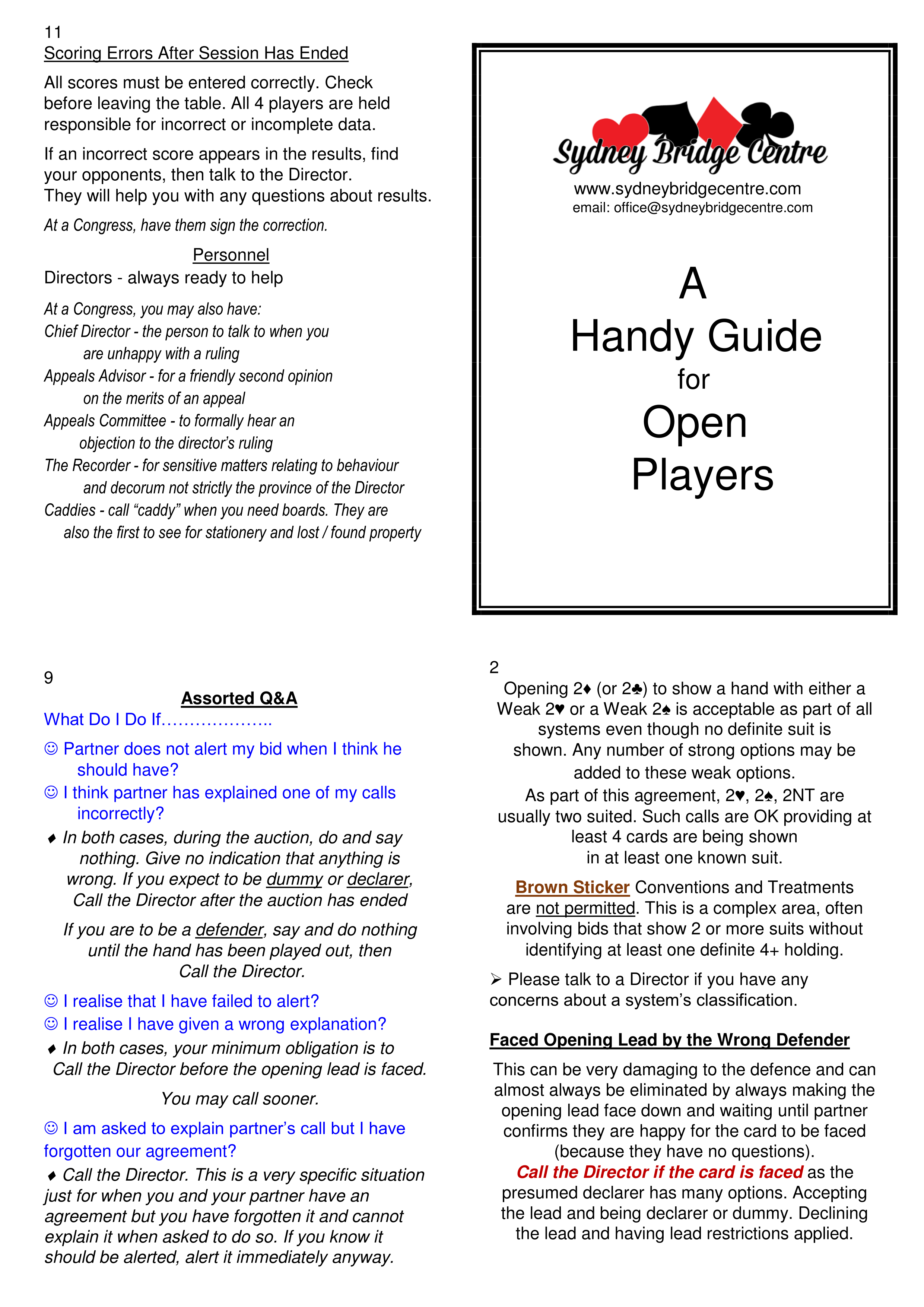 The final one is intended for those joining the Open fields at either the Clubs or Congresses, and is the “Handy Guide for Open Players”.