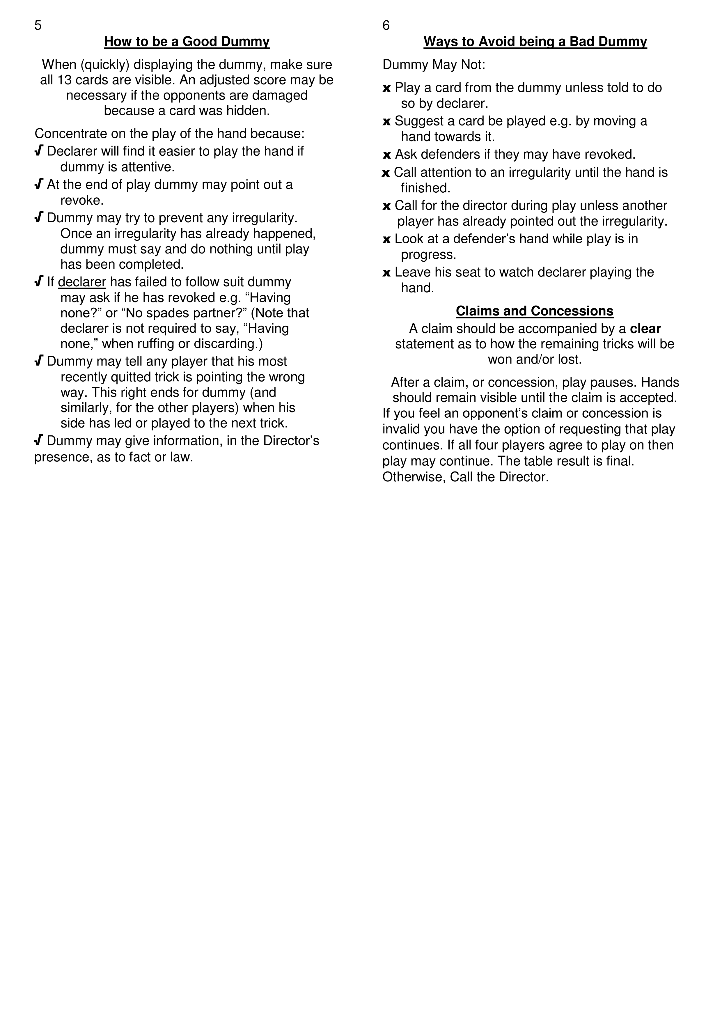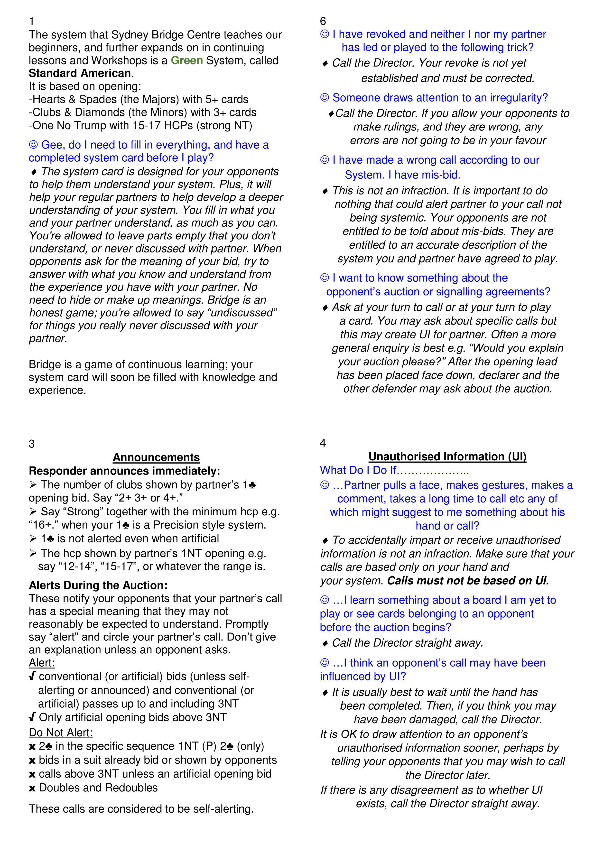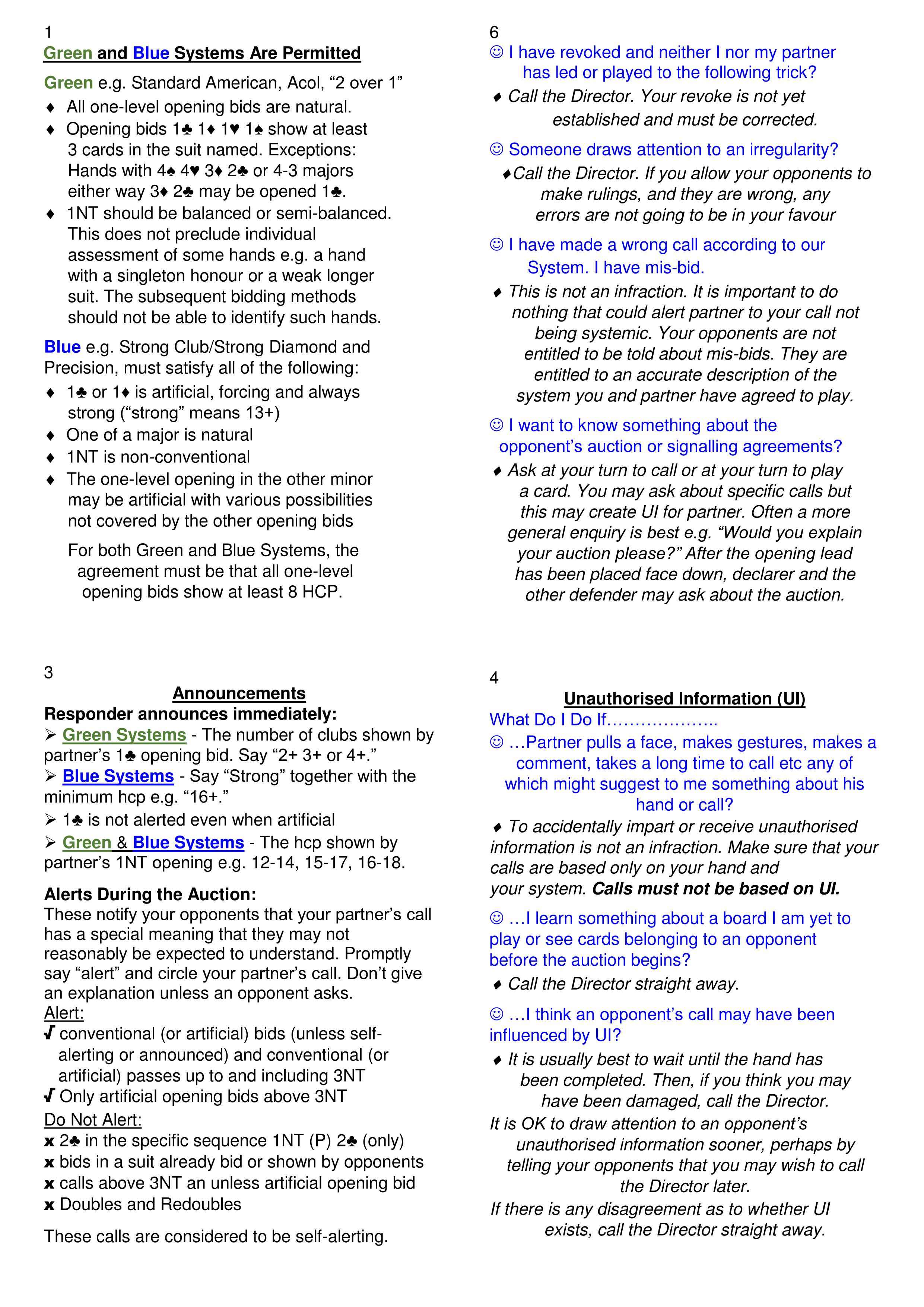 We have created 3 “Handy Guides” intended to help people understand some of the common situations and occurrences at the table. Each is an expansion of the previous.