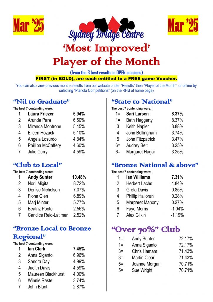 Andy Sunter and Laura Friezer did it again! Plus many more new names on the Most Improved Player of the Month in March! The competition is designed to acknowledge players’ achievement by measuring their improvement in their own categories.