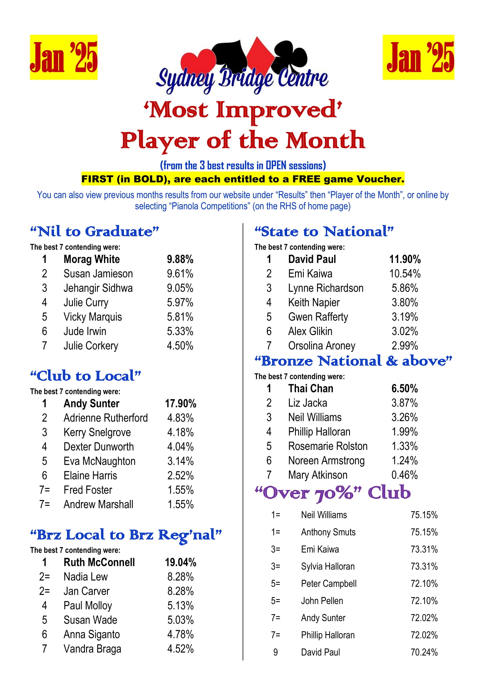 Congratulations to the Most Improved Player of the Month January: