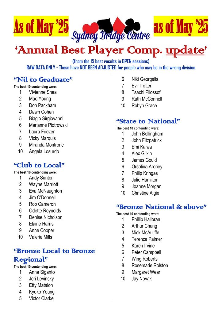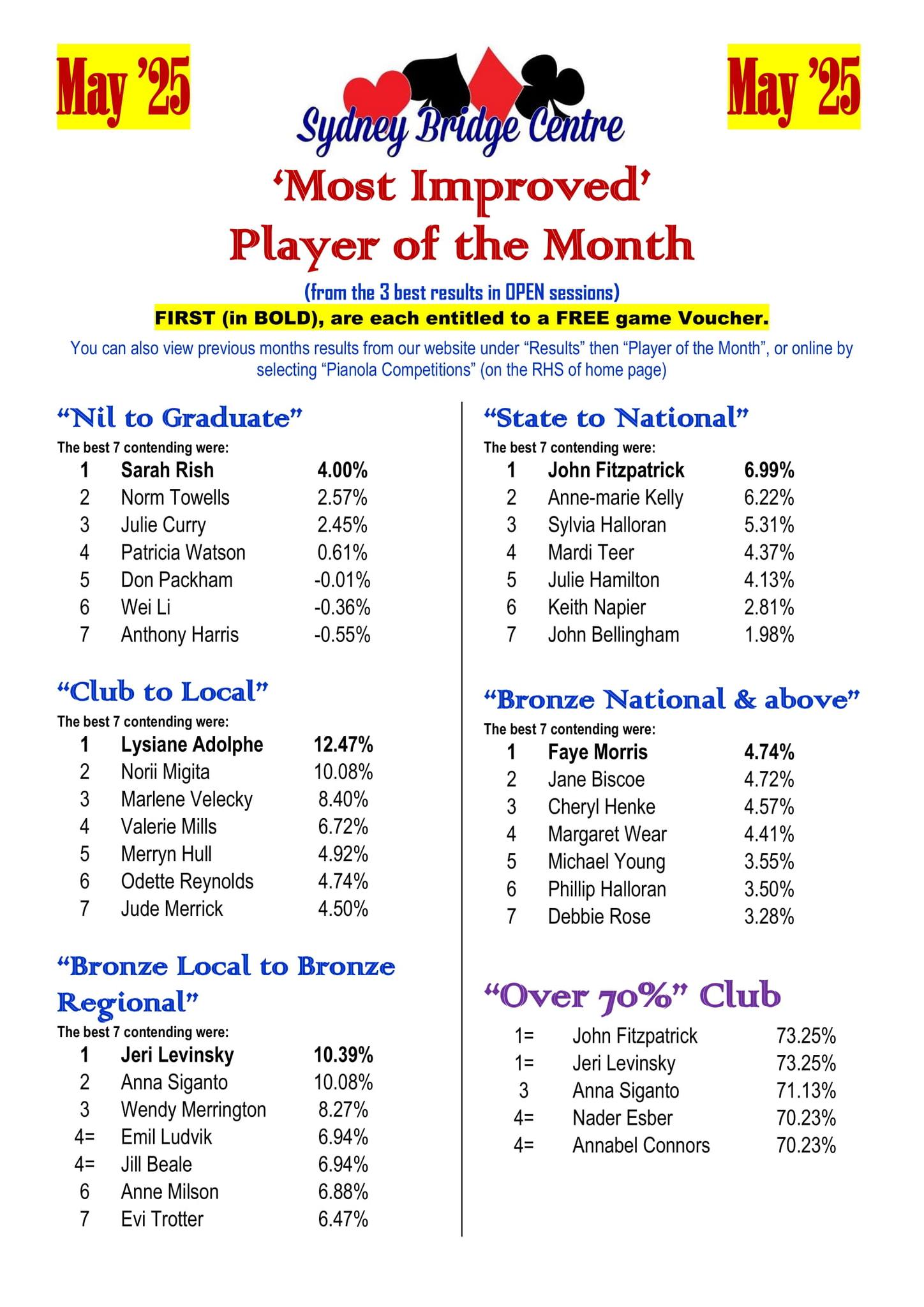 The Most Improved Players of the Month May has seen a few players from our Saturday ARVO session in Henley! The SBC Club Championships have two competitions – the Most Improved Player of the Month acknowledge players’ achievement by measuring their improvement in their own categories, and the annual Individual Club Championships running from January to November will award players with the best results. Please find the interim results below.