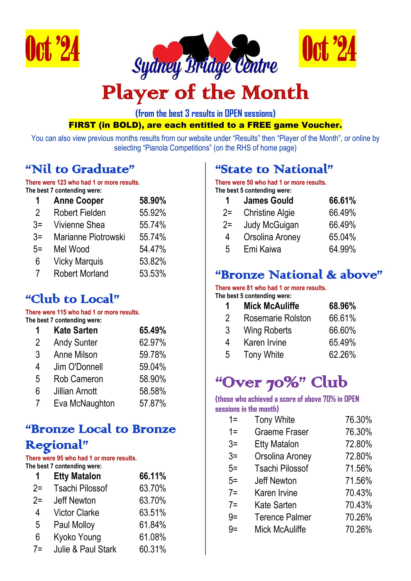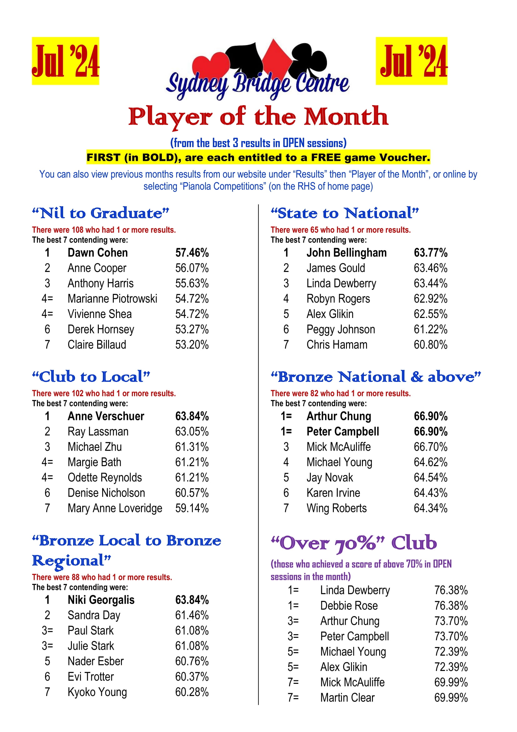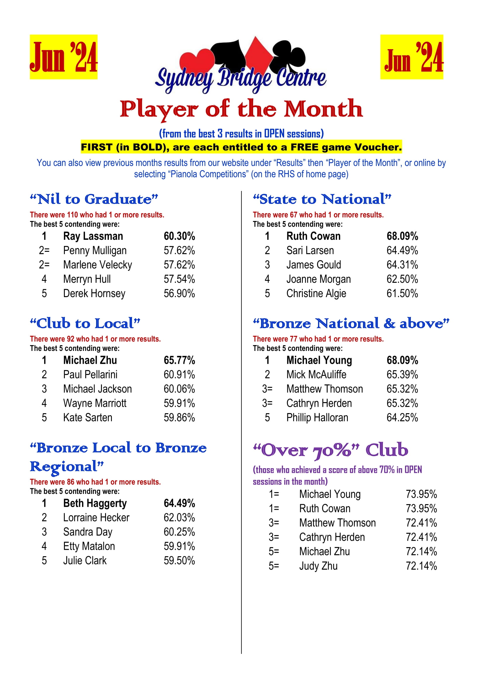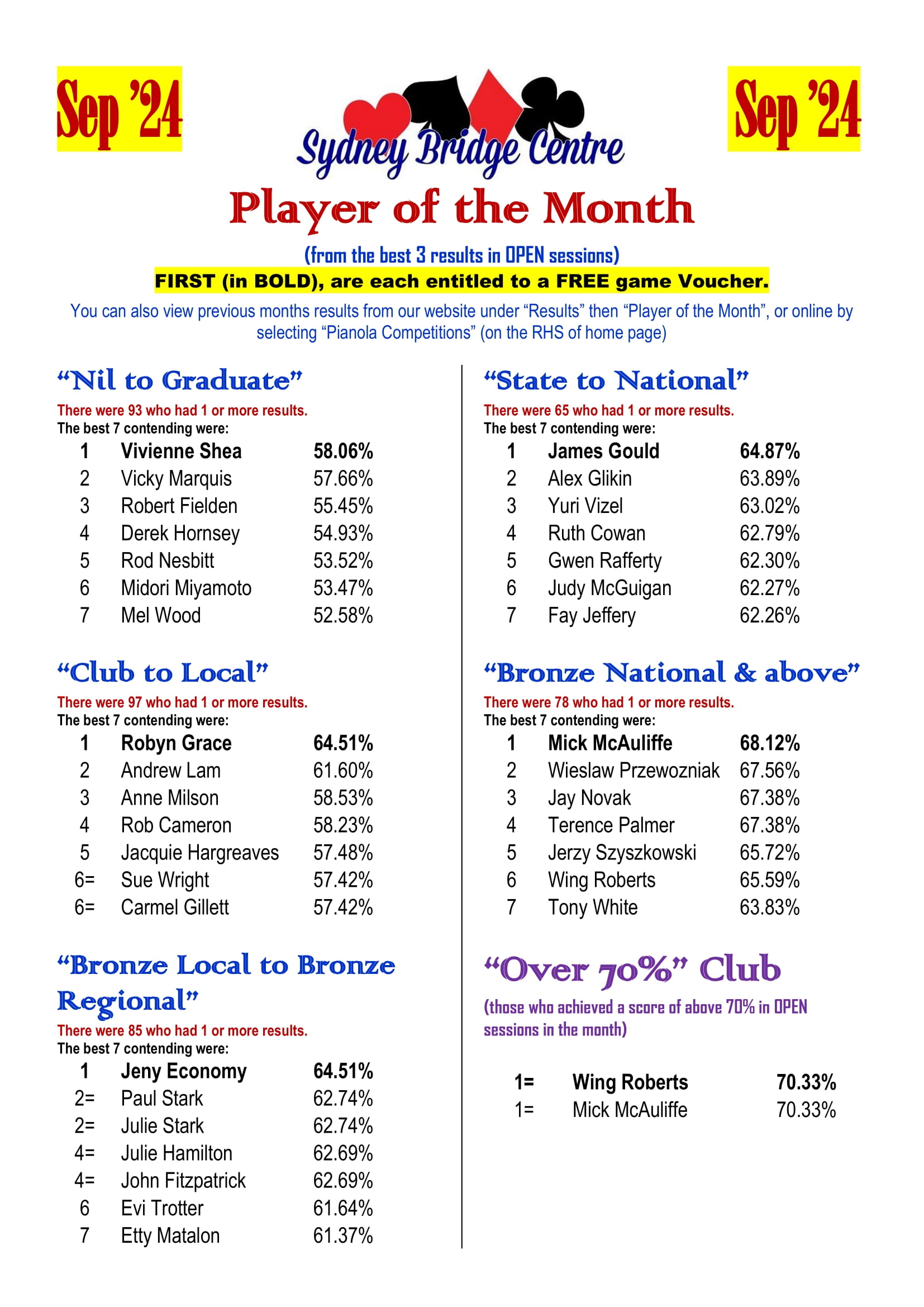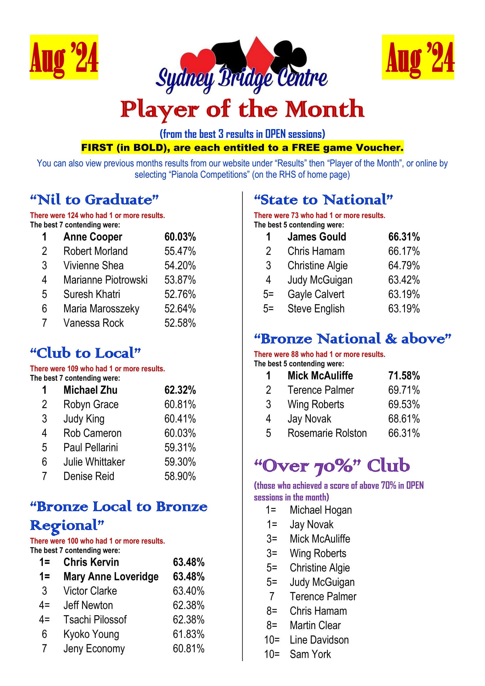 The 2024 SBC Player of the Month competition was a great success. The program was designed to give us an opportunity to acknowledge the achievement of our regular players in their own divisions. To fulfil this purpose, we are going to fine tune the 2025 competition and put more focus on improvement. We are expecting more new faces in next year’s Player of the Month!
