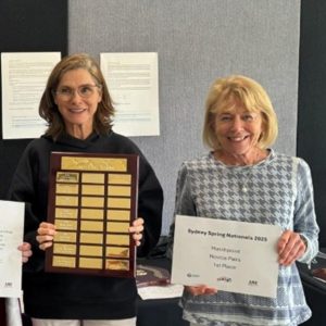 - Thur/Fri Two-day Pairs – Open 7th Jake Andrew and Rakesh Kumar, Intermediate 4th Stuart Schon and Maeve Doyle, Intermediate 7th Gail McKenzie and Peta Drake, Novice 1st Tim Jackson and Shane Grogan, Restricted 3rd Orsolina Aroney and John Fitzpatrick, Restricted 7th Melissa Iverach and Andy Sunter, Restricted 10th Michael Jackson and Claire Bonic.