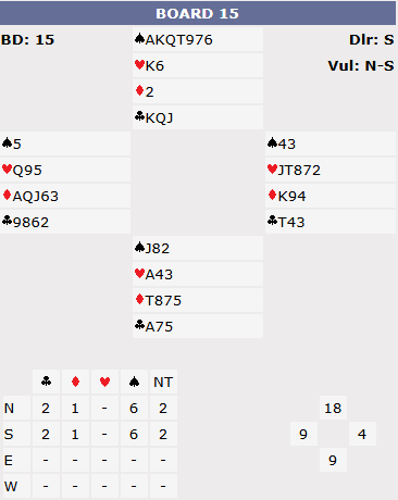 This hand from a recent pairs duplicate session was a good example. North South bid uncontested: