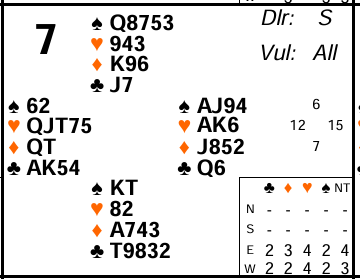 Board 7 last week was almost universally played in 4 by West. But there were a few traps waiting for inexperienced or careless declarers that meant they made fewer tricks than they might have. Let’s see what they were and how to avoid them.